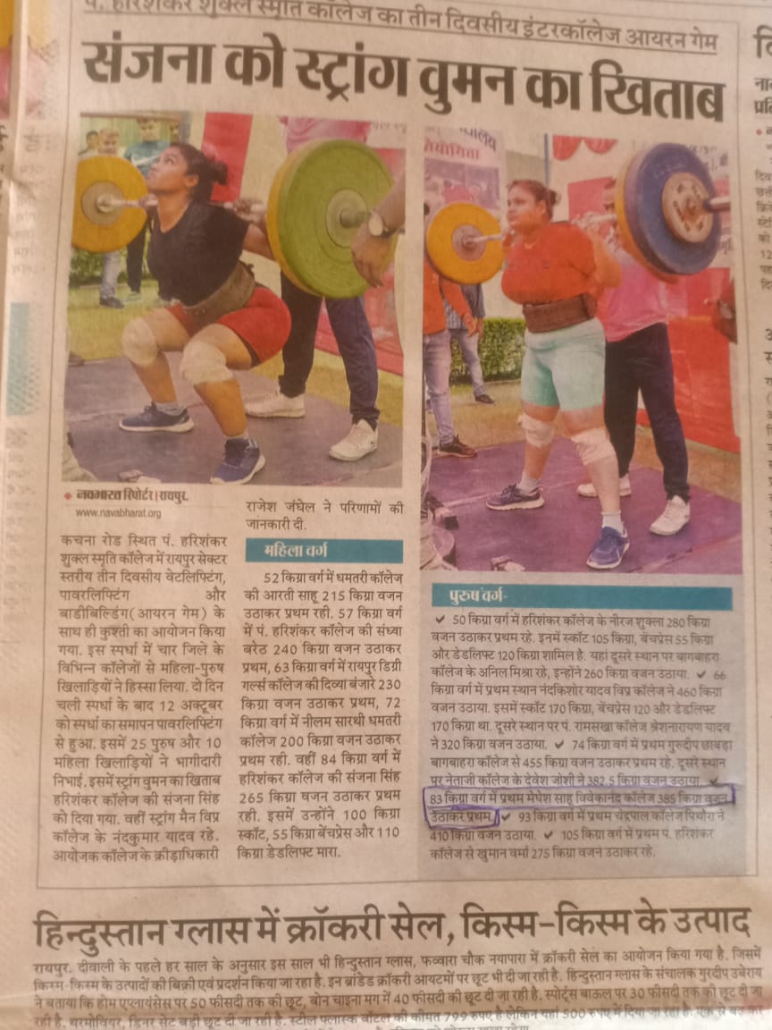 PGDCA student Meghesh Sahu stood second place in Inter College weightlifting